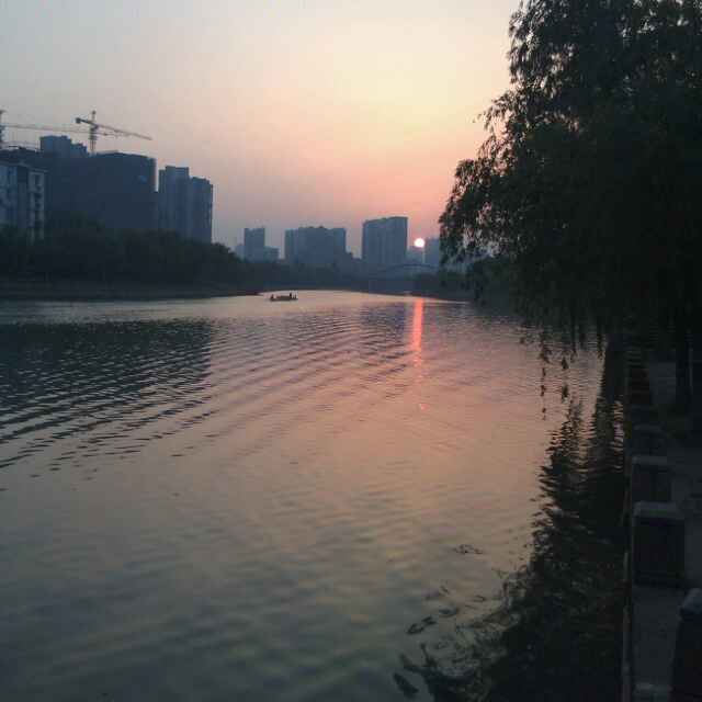 熾焰般的余暉漫過天際,正與西沉的夕陽交相輝映……我們沐著這帶著余溫的霞光,駛?cè)肓司┕咚?,車輪碾過漸濃的暮色,一路向著休